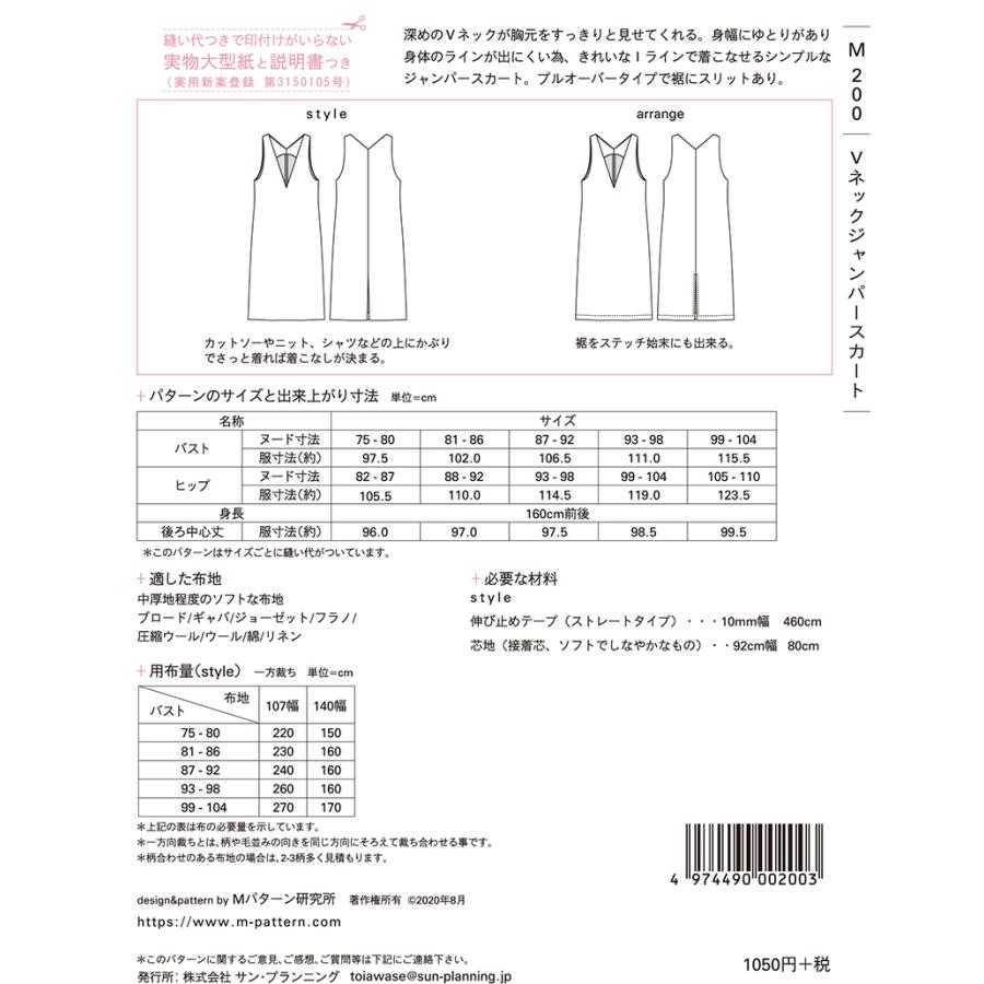 型紙 パターン Vネックジャンパースカート No m0 Mパターン研究所 サンプランニング M0 あなたの街のミシン専門店創作工房 通販 Yahoo ショッピング